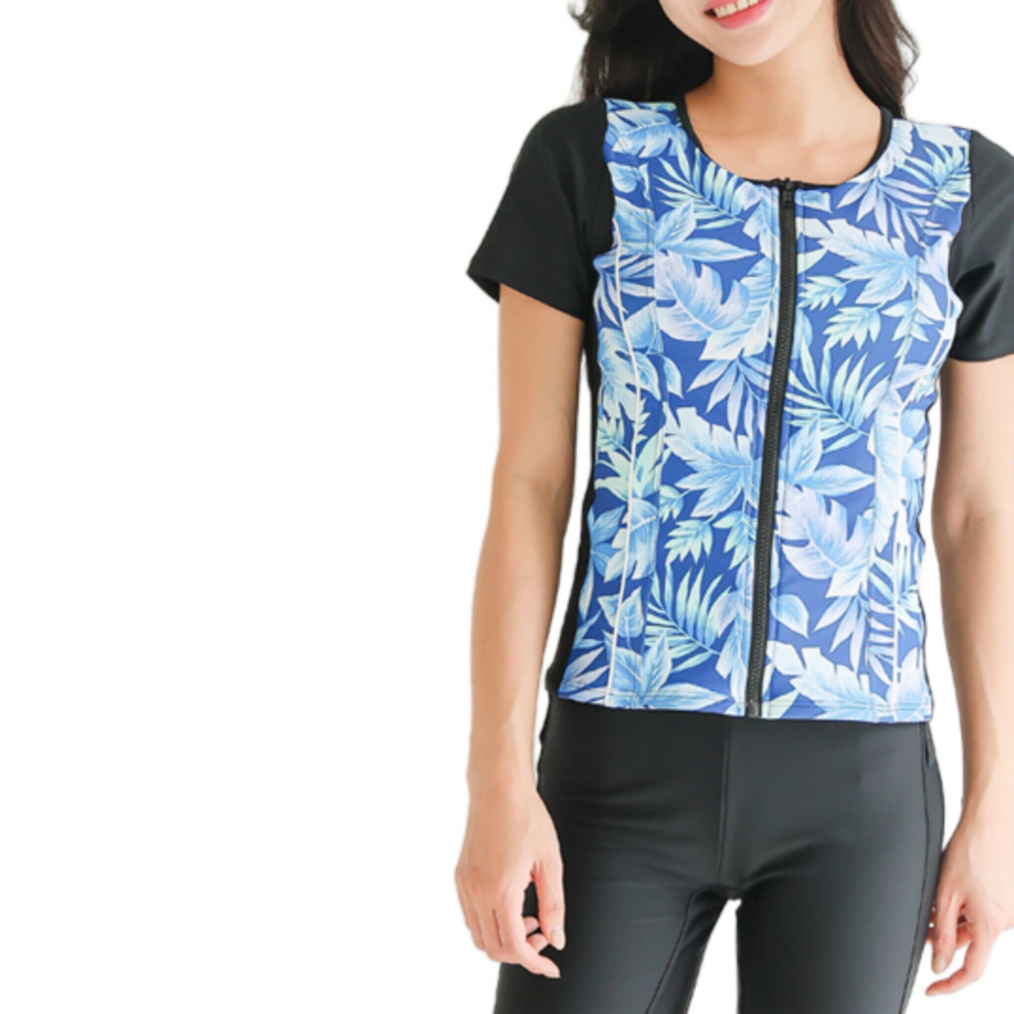 前ファスナー仕様で着脱しやすく、動きやすい半袖設計。